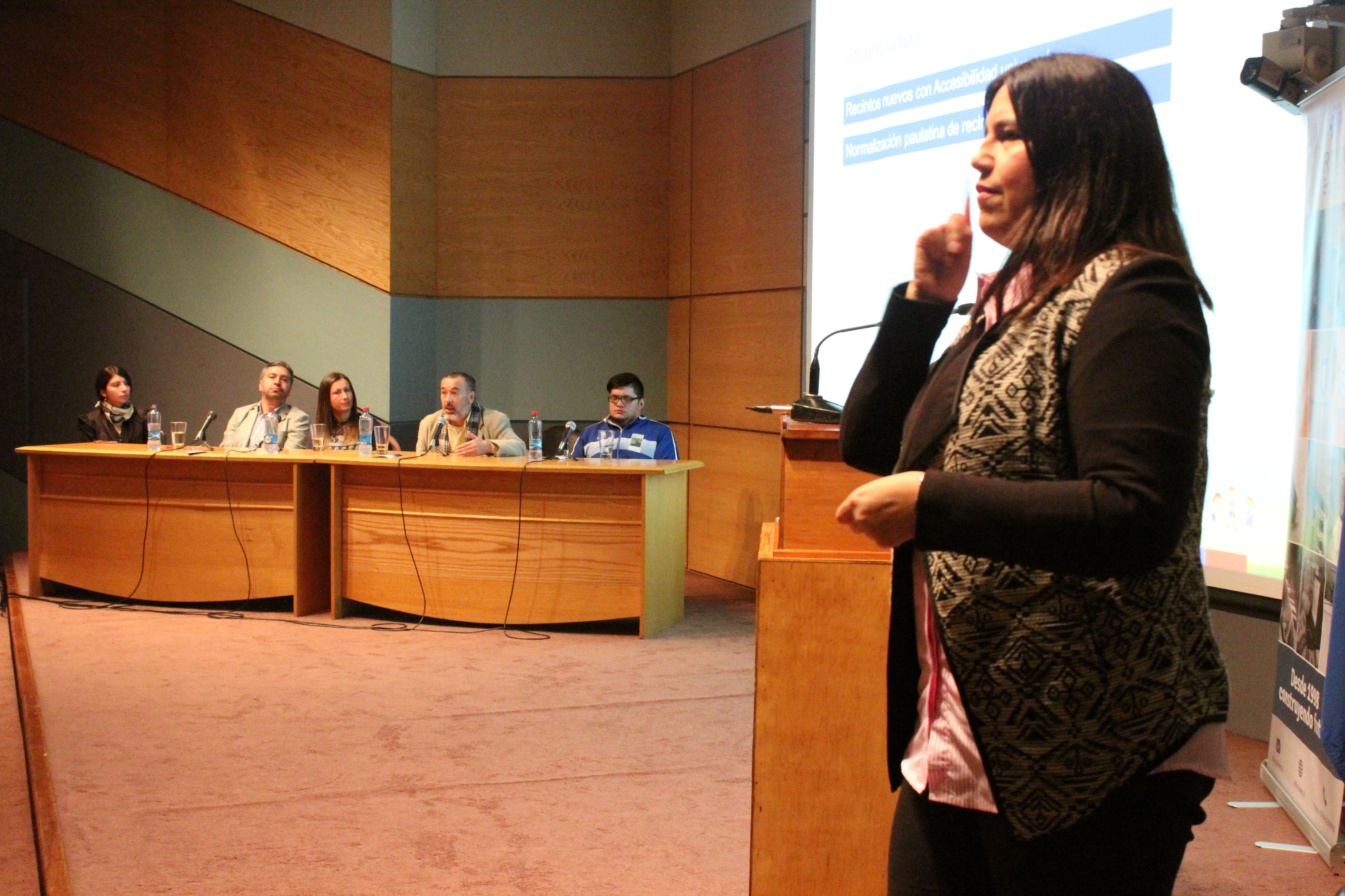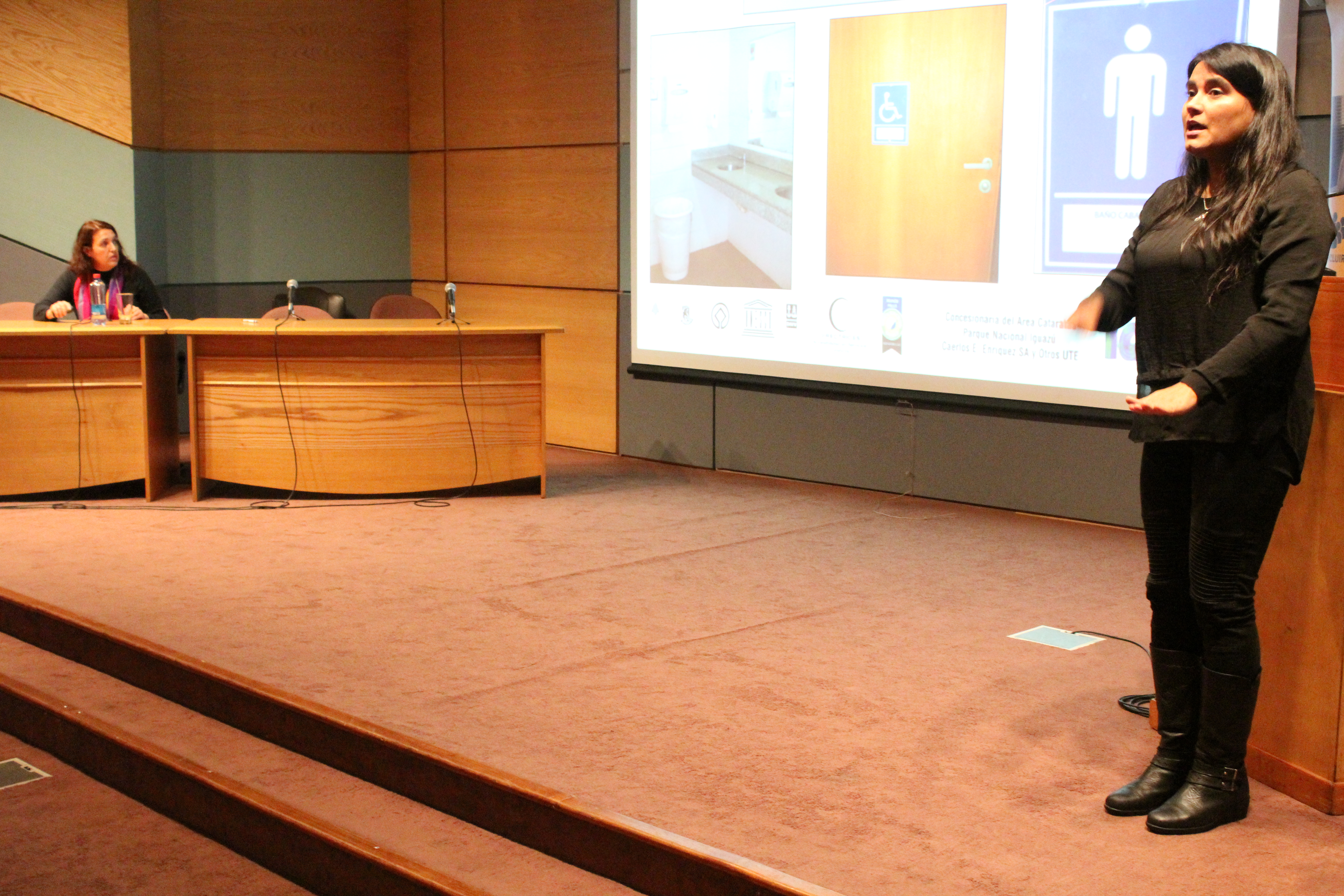 La jornada contó con la participación de la argentina Karina Pudor, encargada de accesibilidad en las Cataratas de Iguazú. Ella contó la experiencia de este parque nacional, que en los años noventa comenzó un proceso de modificación de accesos y hoy es un ejemplo a nivel internacional de inclusión de personas con discapacidad. “Lo primero fue la obra física, pero lo más importante y que nos ocupa hasta ahora es la capacitación. Los trabajadores del lugar deben estar involucrados para que esto resulte”. Otro de los desafíos importantes fue el construir accesos que no alteraran las características naturales del parque, pues se trata de un patrimonio protegido. “Tuvimos que buscar alternativas diferentes a las habituales. Hoy todos los edificios son accesibles, sin barreras físicas”.