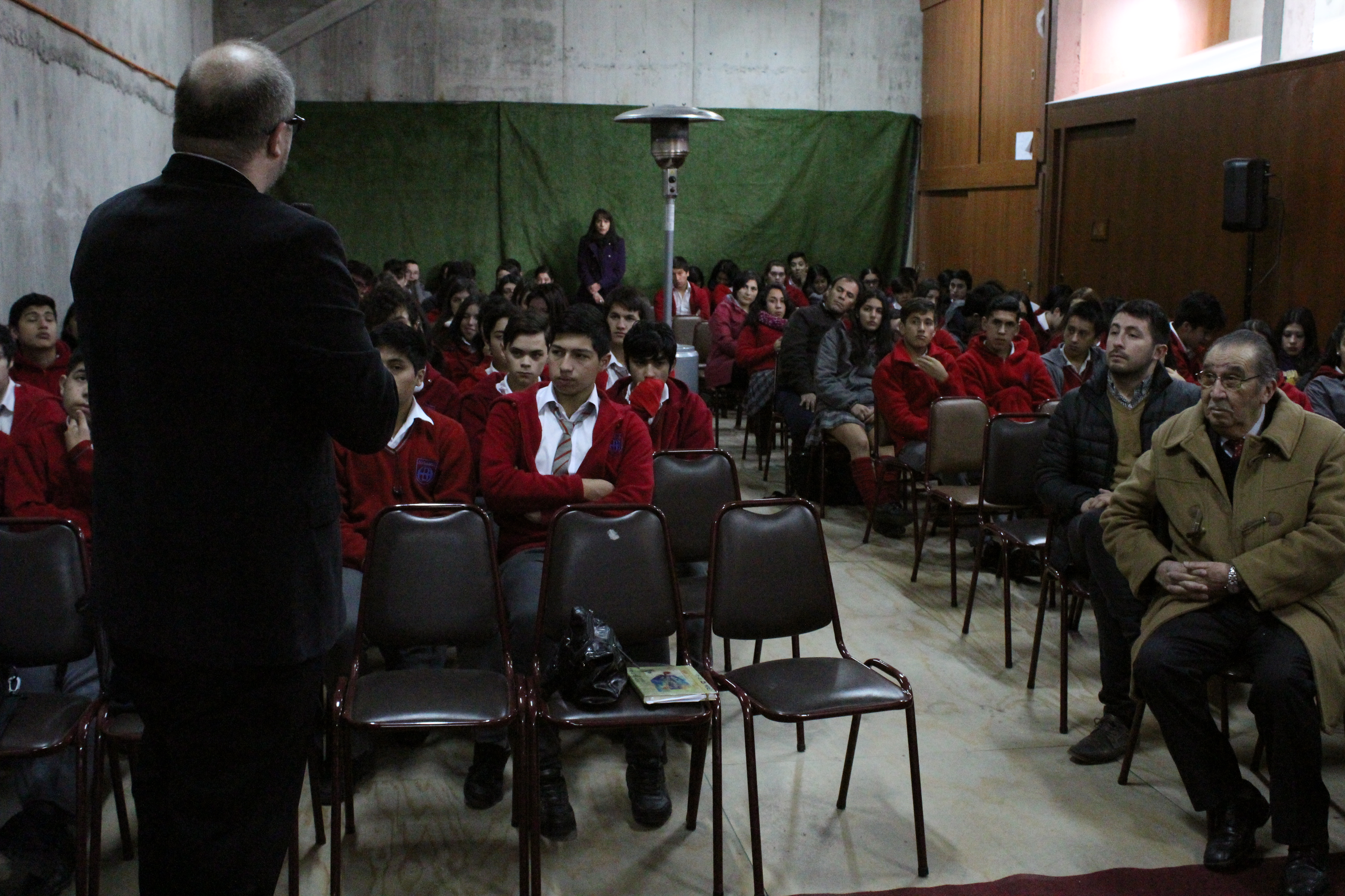 Con el fin de incentivar el amor por la literatura y dar a conocer algunos aspectos emocionantes de su profesión, el profesor de la carrera de Periodismo, Carlos Basso, inauguró el ciclo de charlas “La lectura te hace bien”, una actividad que forma parte del plan de fomento lector que ejecuta el Departamento de Lenguaje del Colegio Andrés Bello de Chiguayante.
