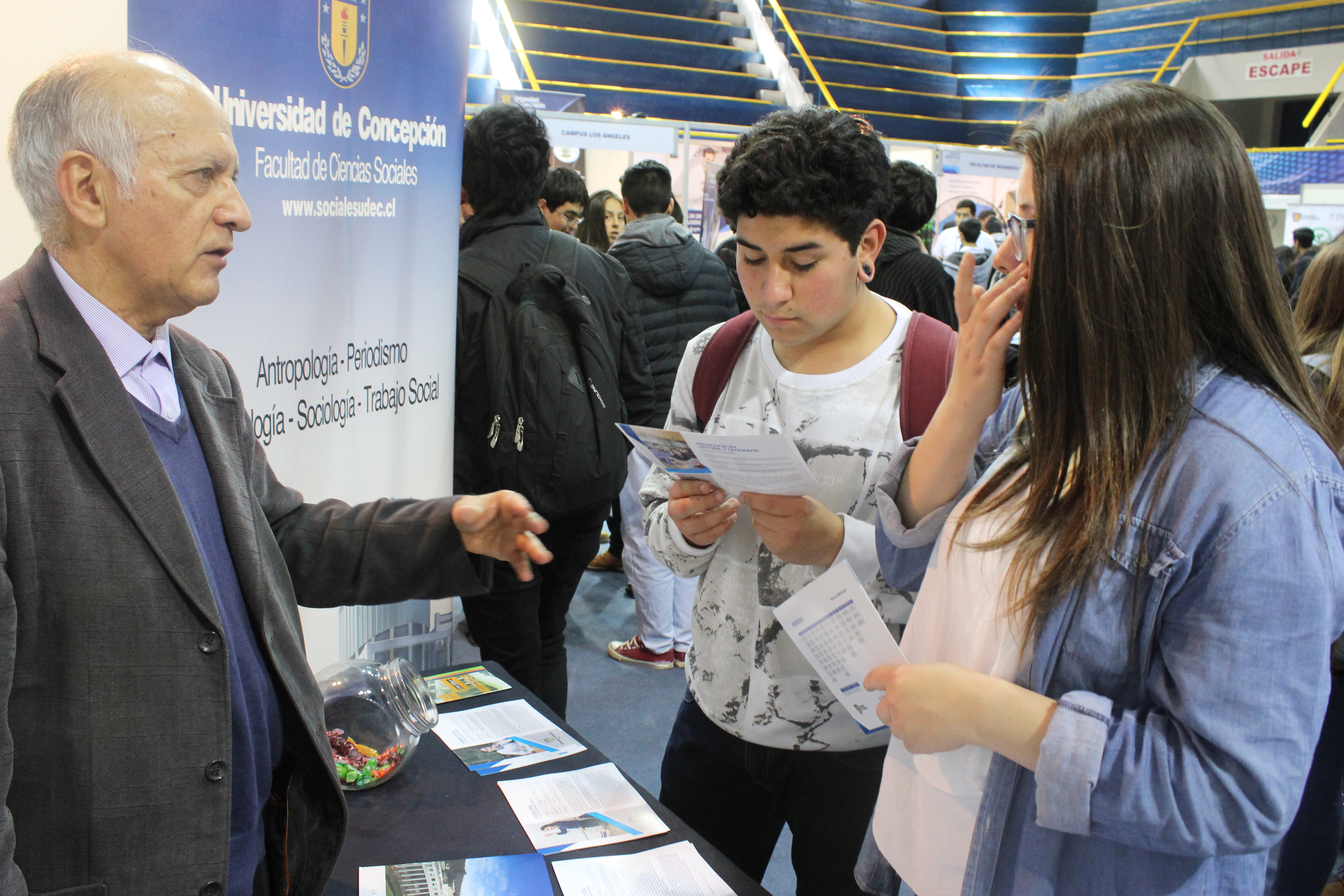 La Facultad de Ciencias Sociales dijo presente en este evento con un stand en el gimnasio A de la Casa del Deporte UdeC. Este espacio contó con la presencia y dedicación de 10 estudiantes de las cinco carreras que se imparten en la unidad académica.