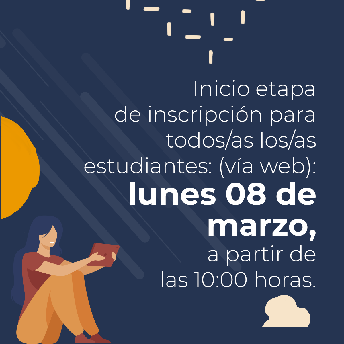 El inicio de la etapa de inscripción será este lunes 8 de marzo, a partir de las 10 horas, mientras que el inicio de las clases para todos los cursos es el 15 de marzo del presente año.