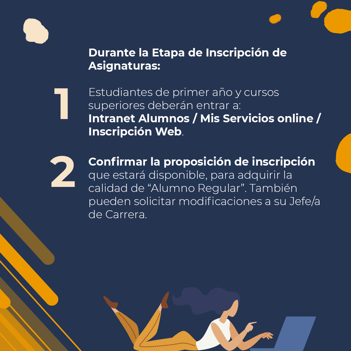 A través de las siguientes infografías te presentamos información paso a paso para completar el proceso de inscripción de asignaturas para el primer semestre académico 2021.