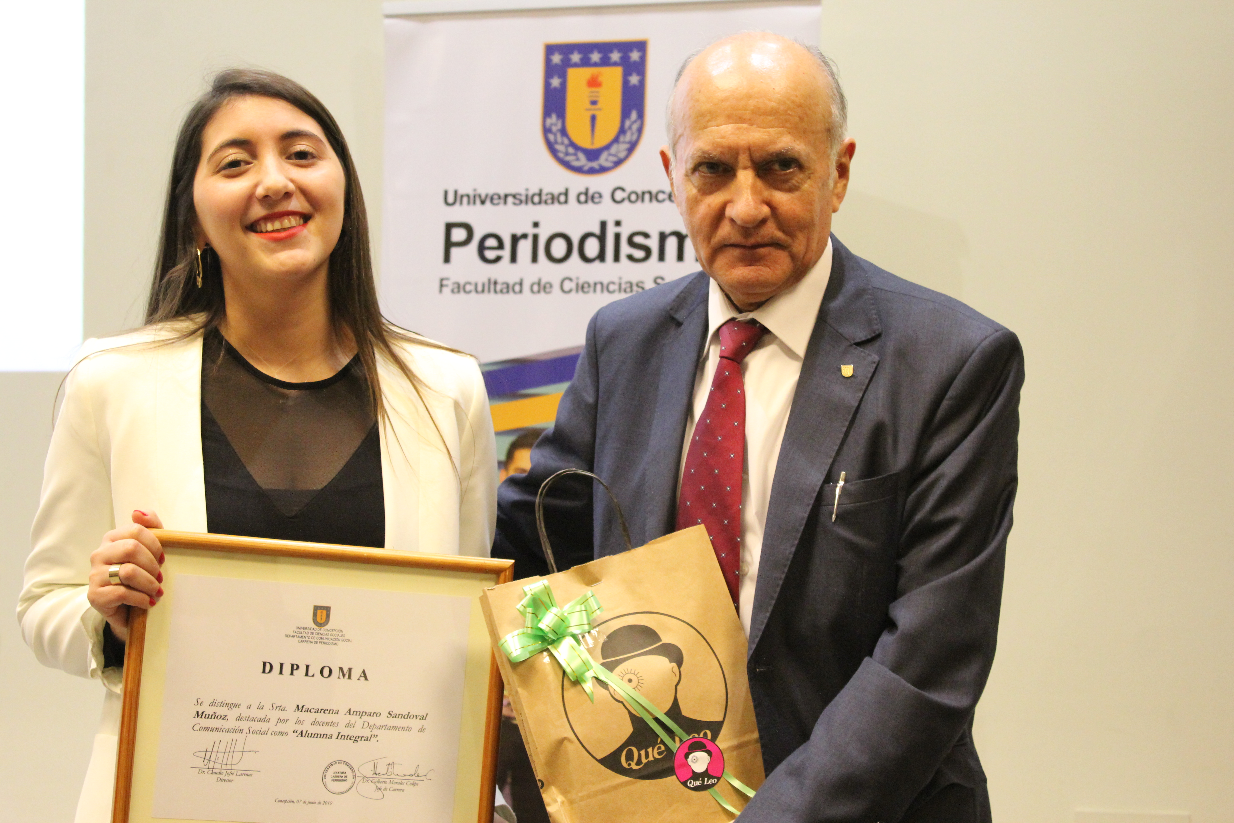 La ceremonia finalizó con los discursos de despedida de la egresada Macarena Sandoval -quien rememoró algunas vivencias en su paso por el pregrado en representación de sus pares- y del profesor Gilberto Morales, jefe de carrera de Periodismo UdeC.