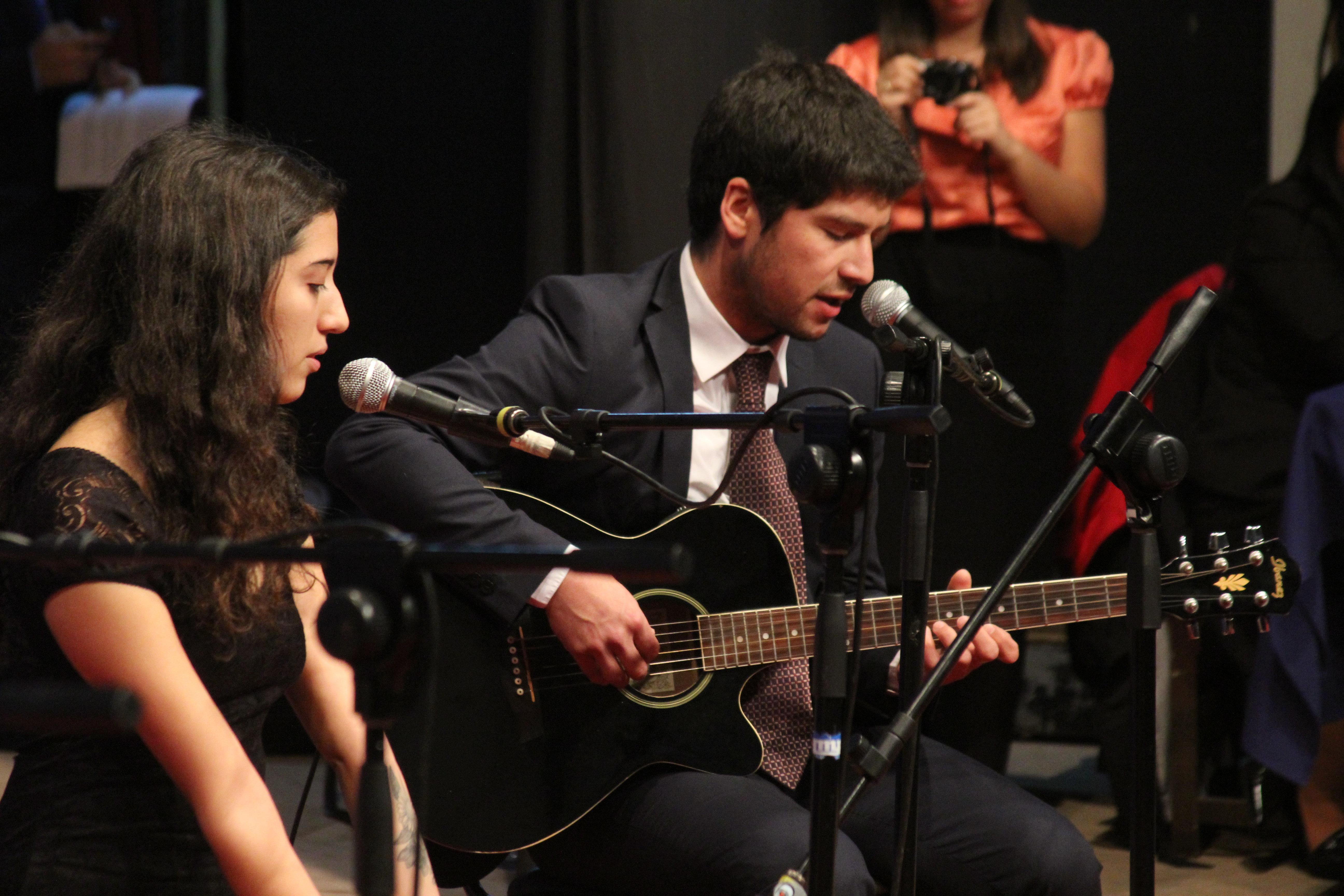 Una vez realizada la distinción a los nuevos profesionales, un quinteto de egresados desarrolló un interludio musical en el que se interpretaron temas de Joe Vasconcellos, Los Prisioneros y Silvio Rodríguez.