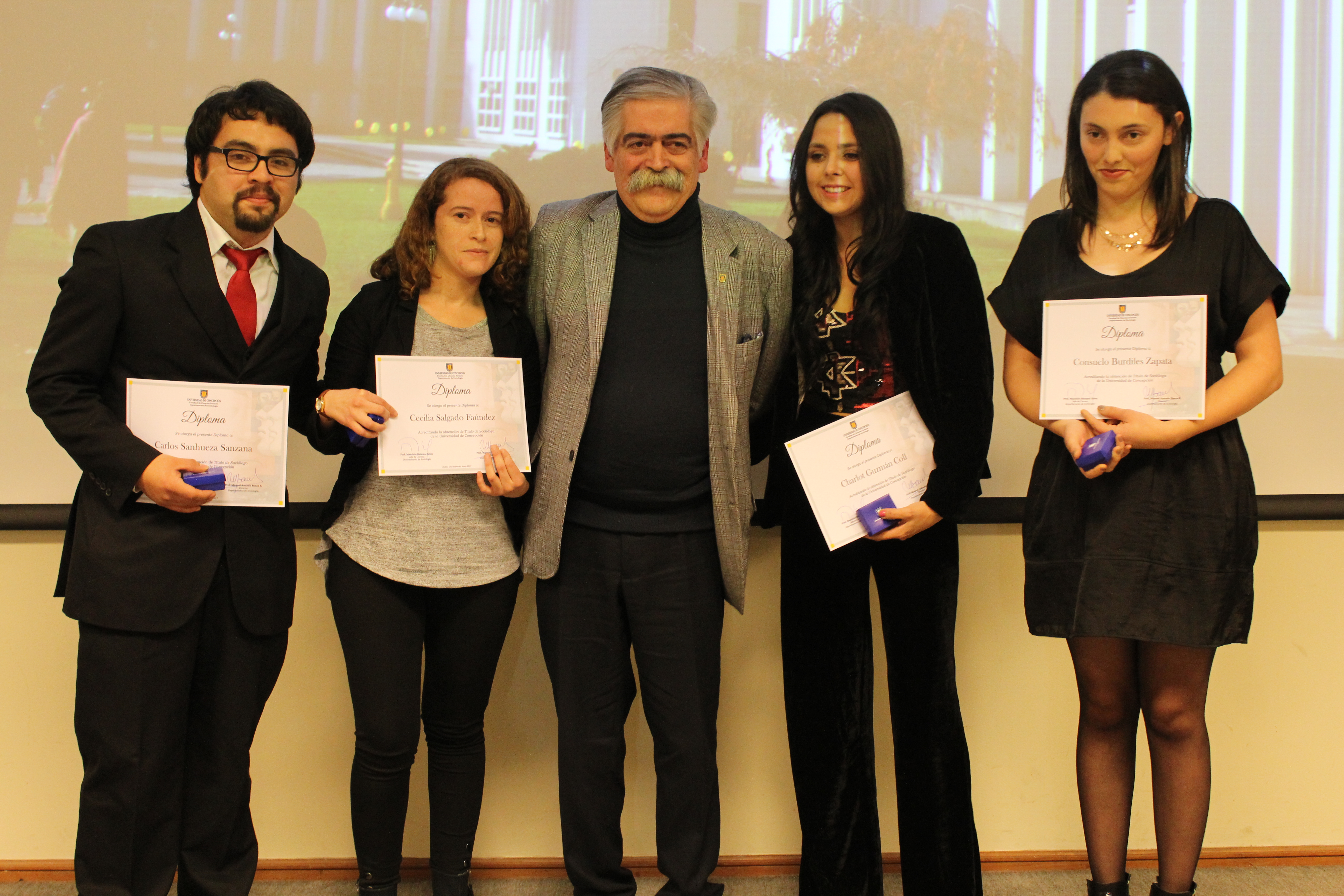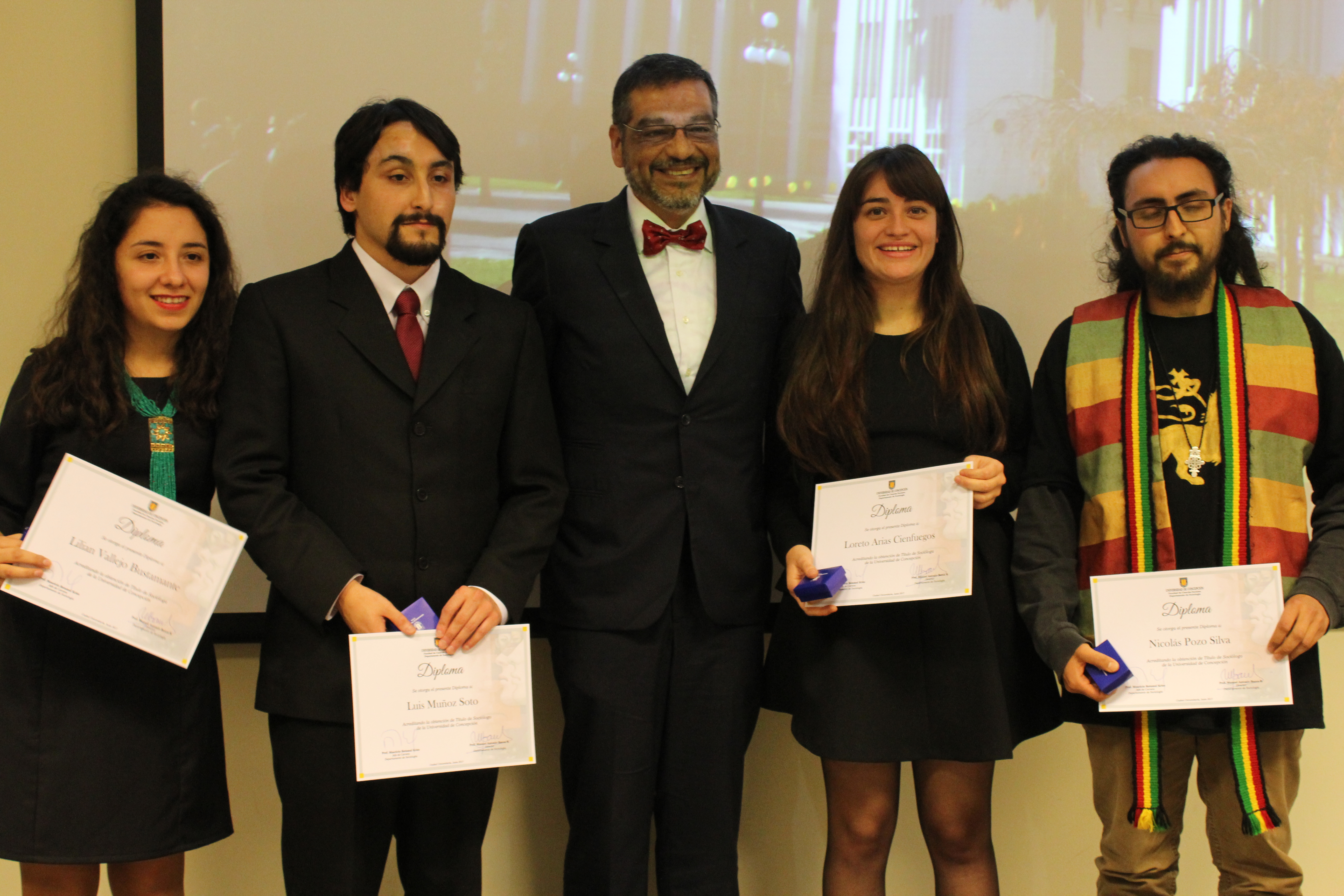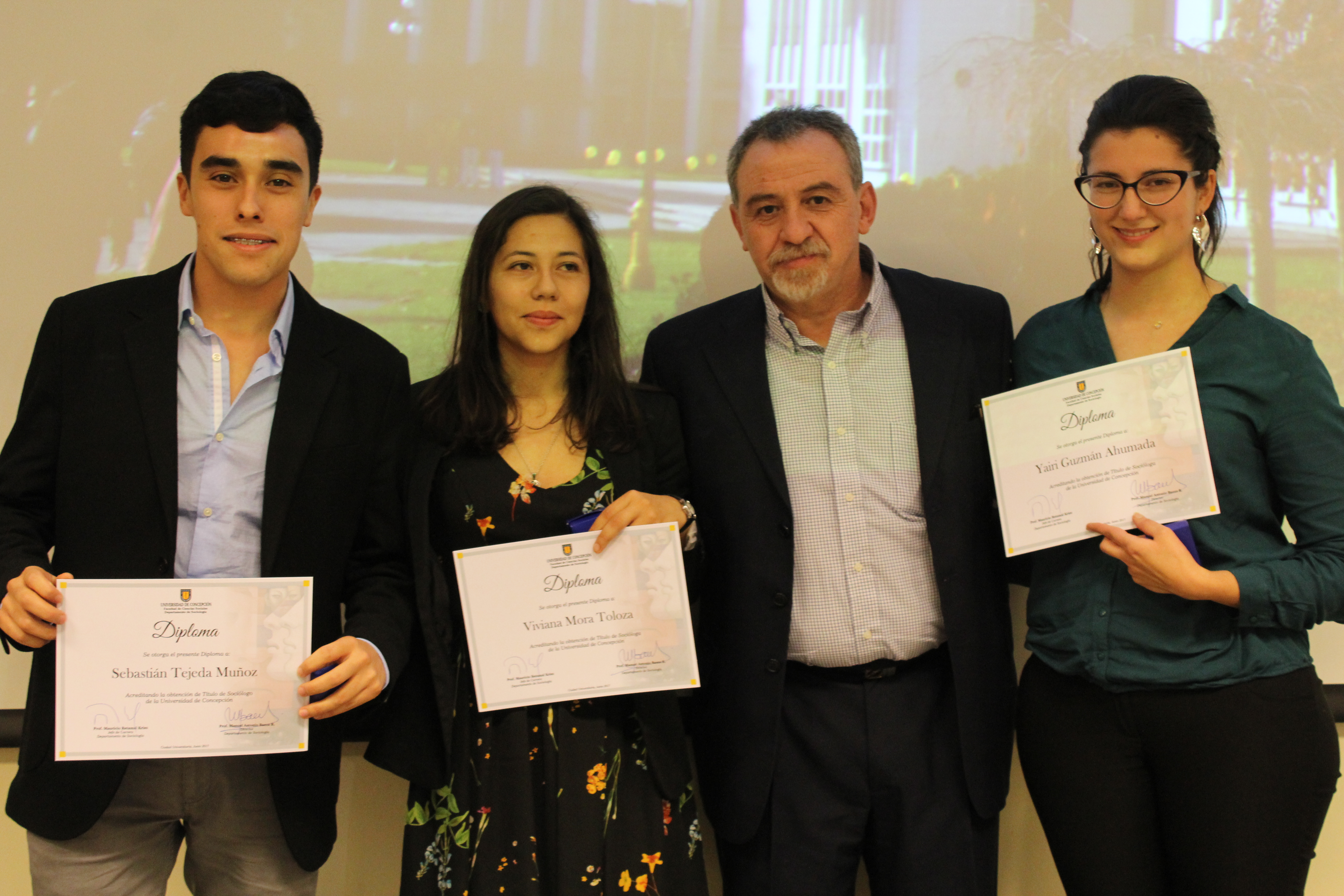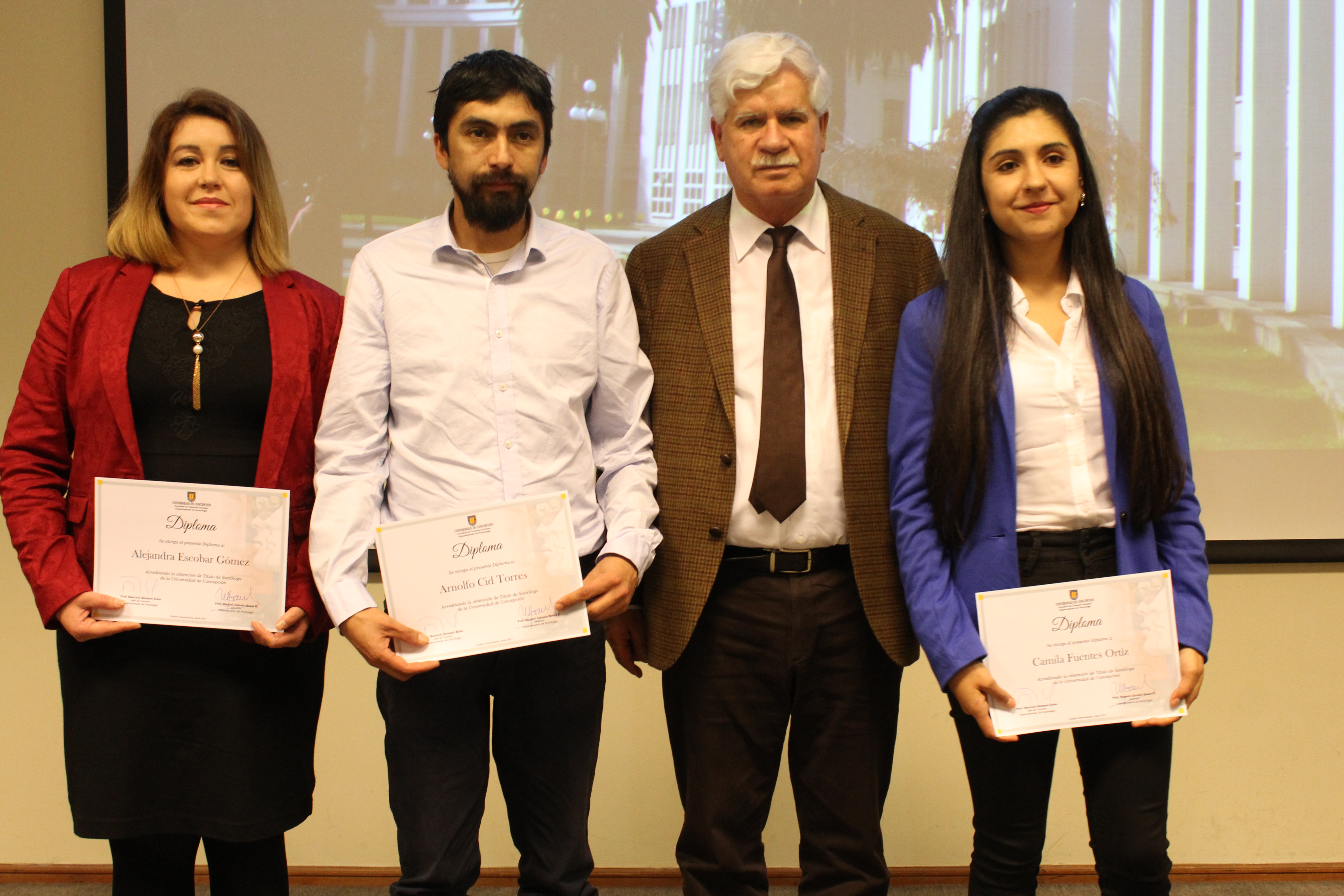 En su discurso de despedida, el profesor Manuel Antonio Baeza, director del Departamento de Sociología, resaltó la formación en el pregrado de los nuevos profesionales y, también, invitó a los nuevos embajadores de la UdeC a que no olviden que lo esencial de la tarea sociológica está en la comprensión de las múltiples subjetividades sociales. “Ninguna sociedad puede caminar sin comprender siquiera el rumbo que ella emprende. Ustedes que parten en esta profesión debieran rápidamente ser solicitados para intentar elucidar con su capital de conocimientos los enigmas de este complejo Chile de nuestros tiempos. Para esa tarea encomiable, ustedes han sido bien preparados y preparadas teórica y metodológicamente. Ustedes disponen de los ingredientes necesarios para contribuir a la reflexividad indispensable en la construcción de un país mejor”, aseveró el académico.