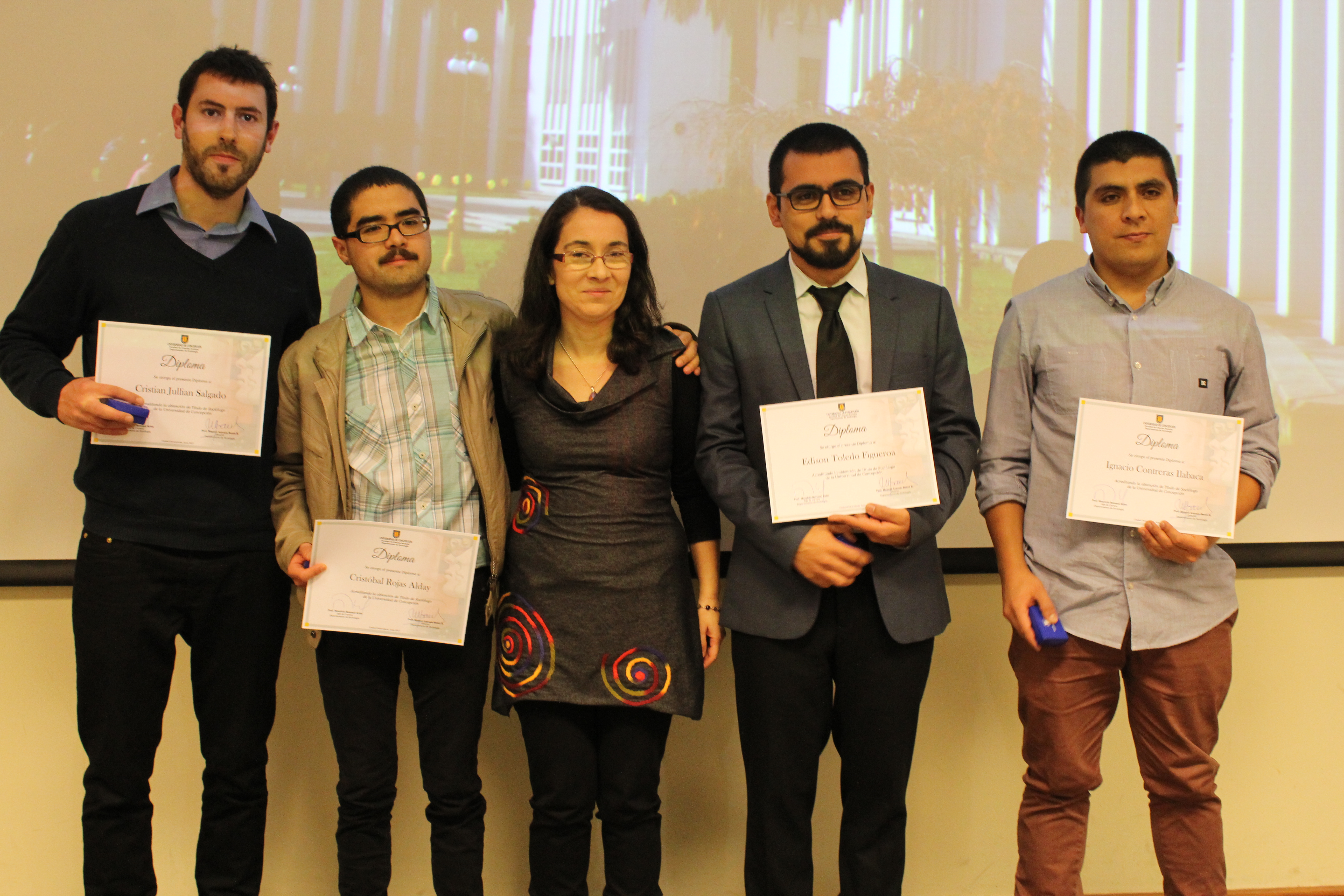 Este año, el “Premio al mejor rendimiento” fue para Cristián Jullian; por su parte, Yairi Guzmán recibió el “Premio al compromiso con la carrera” y el “Premio al compromiso social Nelson Gutiérrez”; mientras que Loreto Arias fue distinguida por el reconocimiento otorgado por parte del Ministerio de Economía por la calidad de su memoria de título.